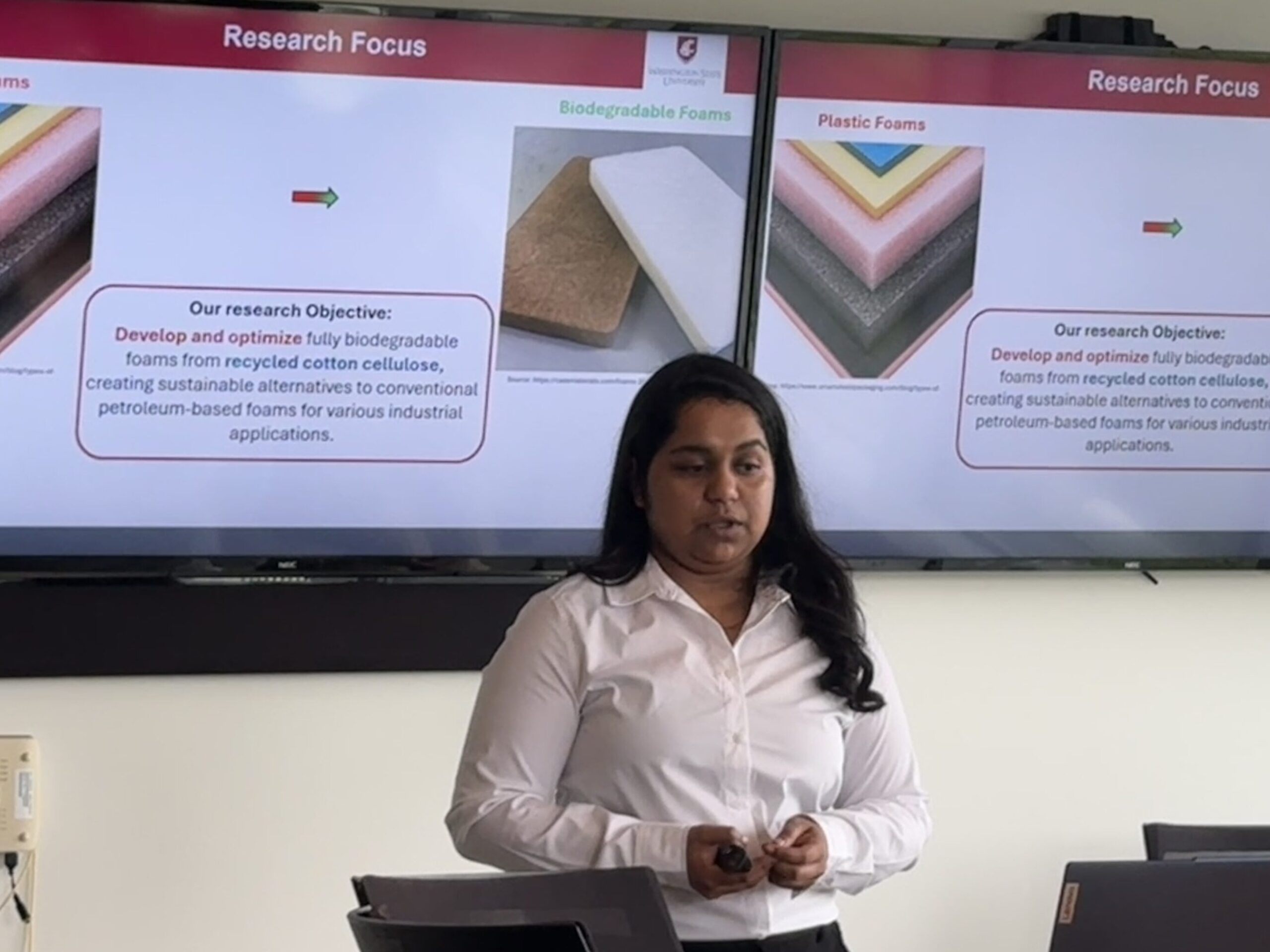 Congratulations to Kundavi Thanda for defending her Master of Materials Science and Engineering thesis, Developing Cellulose-Based Foams From Cotton waste. Good job, Kundavi!