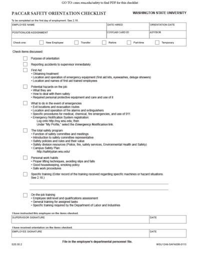 - Print out the Safety Orientation Checklist (PACCAR), fill in your information, and check off the boxes as you read the PACCAR safety PDF.