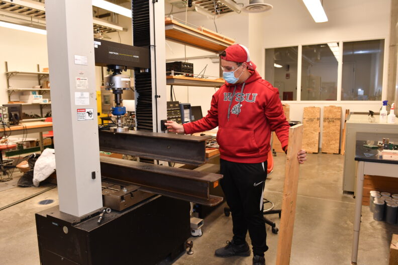 Dalisson Silva Do Carmo worked with Dr. Karl Englund on research that aims to create a powerful prediction model based on the mechanics of materials to determine how much pressure is required to make low-quality lumber flat. This is particularly useful information for manufacturing of Cross-Laminated Timber (CLT) where the pressure applied to a CLT stack is directly related to its bond strength. As a desired outcome, this could minimize losses, optimize the manufacturing process, and could increase the usage of out-of-grade material like small-diameter timber which has been a major issue.