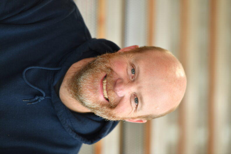 Tom Maloney inspects fibers for fiberboard
